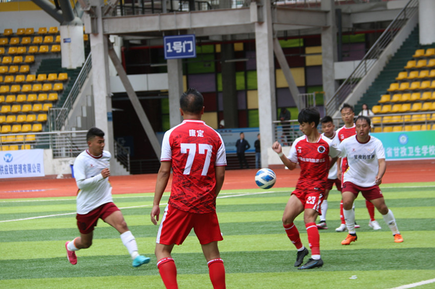 下半場比賽開始,甘孜隊通過長傳和球員之間的跑位,取得了一些進攻機會,但是康定隊的后場防守嚴(yán)密,甘孜隊并沒有取得實質(zhì)成果,一場拉鋸戰(zhàn)正在展開。第64分鐘,康定隊選擇換人來保持進攻的火力,比賽繼續(xù)。第75分鐘,甘孜隊在前場多次傳球,10號登真達吉接到足球后選擇直接打門,一道弧線劃過康定隊的半場,足球應(yīng)聲入網(wǎng),平分的僵局被打破,比分變成了甘孜隊1:0康定隊。