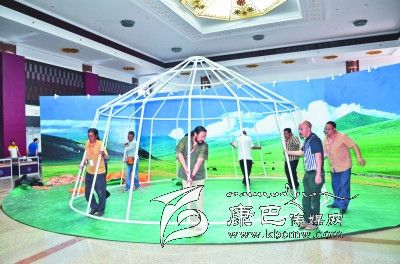拾階而上,從序廳開始每走一步都會心生蓮花,首先映入眼簾的是兩堵巨大的LED顯示屏,屏幕上滾動播放著旅游宣傳片,清澈的藍天、綠綠的草地、農牧民們淳樸的笑意,眼睛開始跟著心靈旅行,而心的深處卻像長出了一對靈巧的翅膀,振振欲飛。西廳的照片墻,除去未經PS過的高原美景外,還展示了建州64年來,甘孜兒女向上奮發(fā)的新面貌。由西廳出來至正廳,在跨進門口的一剎那,便會被那頂蒙古包似的虎皮帳篷所吸住魂魄,流連、駐足、照相,它被人們傲慢地搭建在整個展廳最顯眼的位置,仿佛在箱底收藏了那么多年終于揚眉吐氣。北京人是有眼福的,很多在甘孜州本土生活了幾十年的人都是第一次親眼見到這頂帳篷,所有的人都為之驚嘆,并好奇這頂帳篷背后的故事。而關于這頂虎皮帳篷的記載并不多,這頂帳篷原是屬于理塘縣“雍若本”人的,而“雍若本”人舊時為理塘毛埡的土司階層,由于他們的祖先是從青海游牧過來的部落,到現(xiàn)在都保留有流動帳篷寺廟的風俗,據專家們推測如此奢華威嚴的一頂帳篷可能是流動的官府衙門。