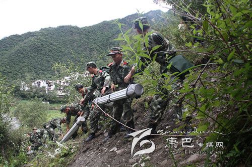 趕到災(zāi)區(qū),眼前已是一片狼藉,無情的泥漿已淹沒了大半個村莊。面對災(zāi)情,全體官兵來不及多想,立即運送救災(zāi)帳篷到達距事發(fā)現(xiàn)場約4公里外的國如村。前往國如村的山路崎嶇,汽車無法通行,且隨時可能再次發(fā)生滑坡和泥石流,官兵們不顧危險,肩扛手抬沿山上陡峭的小路進行運送。途中還經(jīng)過一座僅一米寬的木板吊橋,此橋常年失修,走在上面左搖右晃,下面是湍急的河水,十分危險。想到受災(zāi)群眾急切的眼神,官兵們冒著危險,小心翼翼地通過了小橋。