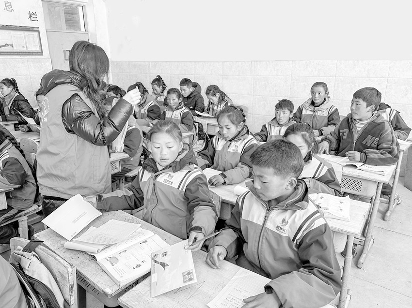 馬尼干戈片區(qū)寄宿制學(xué)校的小學(xué)生正在給遠(yuǎn)方的小朋友寫信。