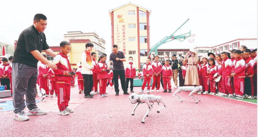 “哇,是機器狗!”“哇噻,好帥氣!”……現(xiàn)場氣氛熱烈,精彩紛呈的機器人表演更是贏得了在場學(xué)生的熱烈掌聲。在互動體驗環(huán)節(jié),同學(xué)們競相踴躍參與,在體驗、觀賞、聆聽科技知識的同時,充分享受著科技帶來的樂趣。