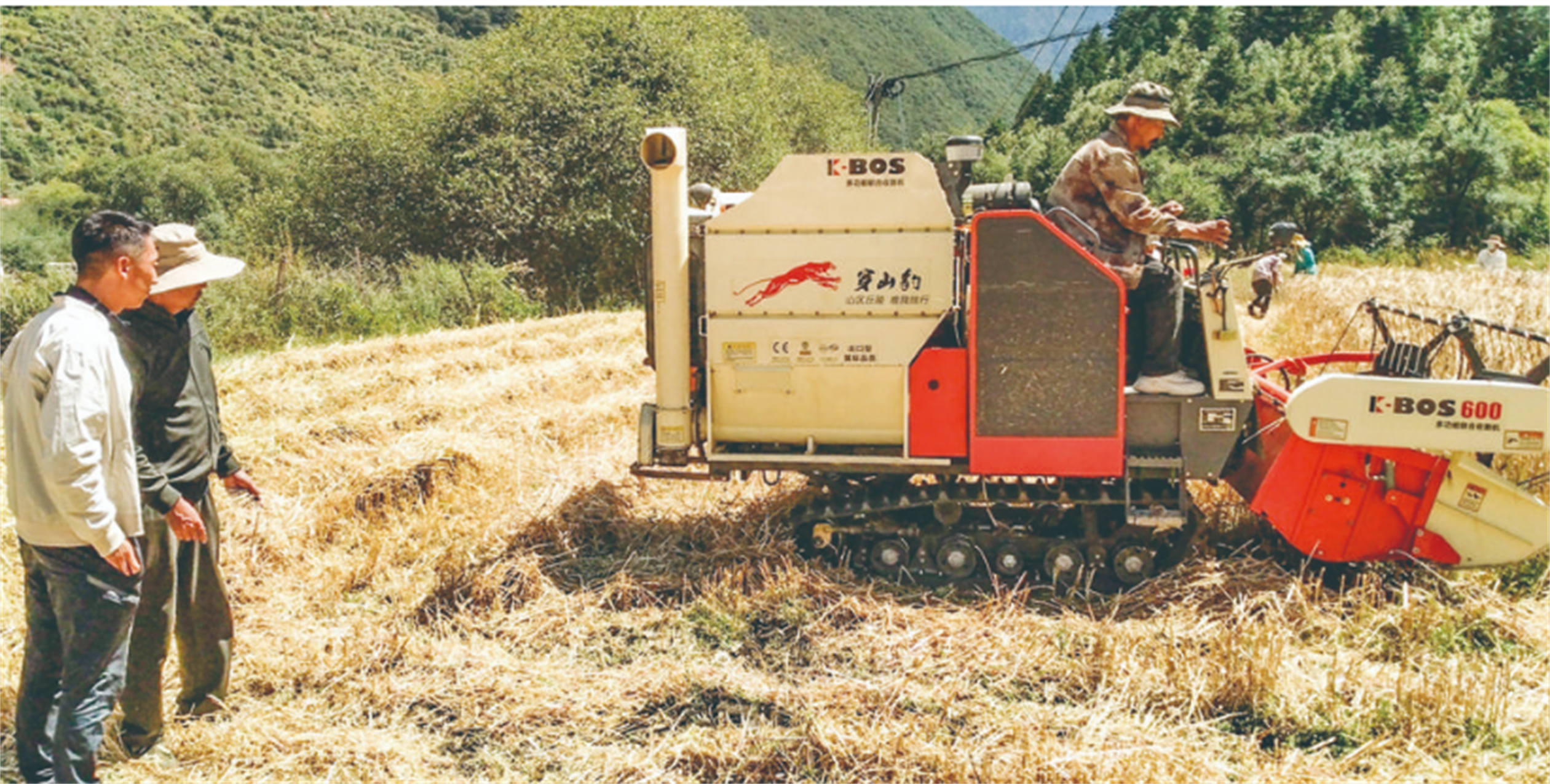 甲斯孔鄉(xiāng)黨委開展為民辦實事指導村民開展機械化收割青稞。