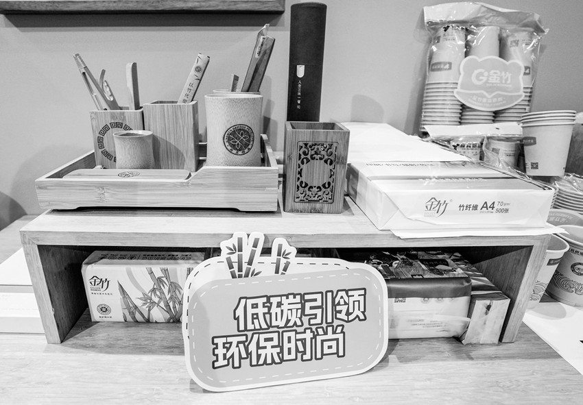 在環(huán)境服務(wù)專(zhuān)題展區(qū),安徽豐原集團(tuán)有限公司帶來(lái)了“小秸稈”也有“大用處”的展示,展臺(tái)上的餐盒、紙杯等都是由秸稈制作而成。
