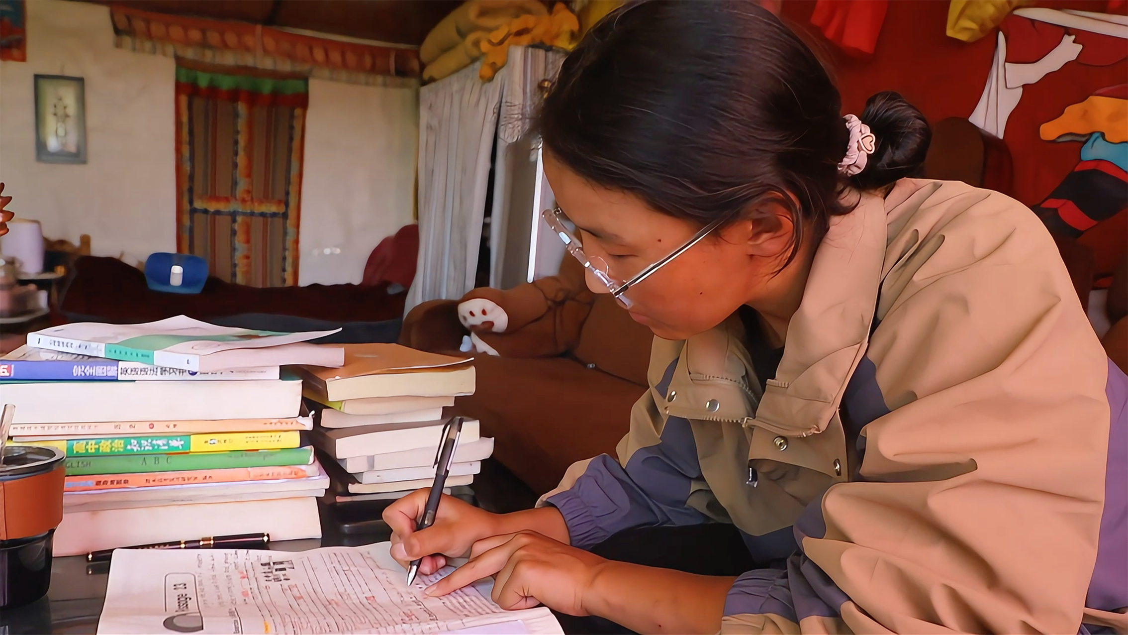 扎西拉姆作為家中的老四,從小便展現出了與眾不同的堅韌與聰慧。她深知家里的每一筆開銷都凝聚著父母的汗水與期望,因此,在學習上她從未有過絲毫懈怠?!懊看畏偶倩貋?,我都會很快地做完家務事,然后開始學習,想到唯有學習才能夠改變家中的現狀,更能改變自己的命運,我就充滿斗志。我從不會給自己設立固定的學習環(huán)境,草地和山坡都是我學習的平臺?!辈莸厣稀⑸狡骂^、夜深人靜的燈光下……總能見到扎西拉姆埋頭苦讀的身影。