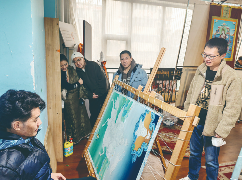 駐村工作隊(duì)隊(duì)員了解唐卡學(xué)習(xí)情況。