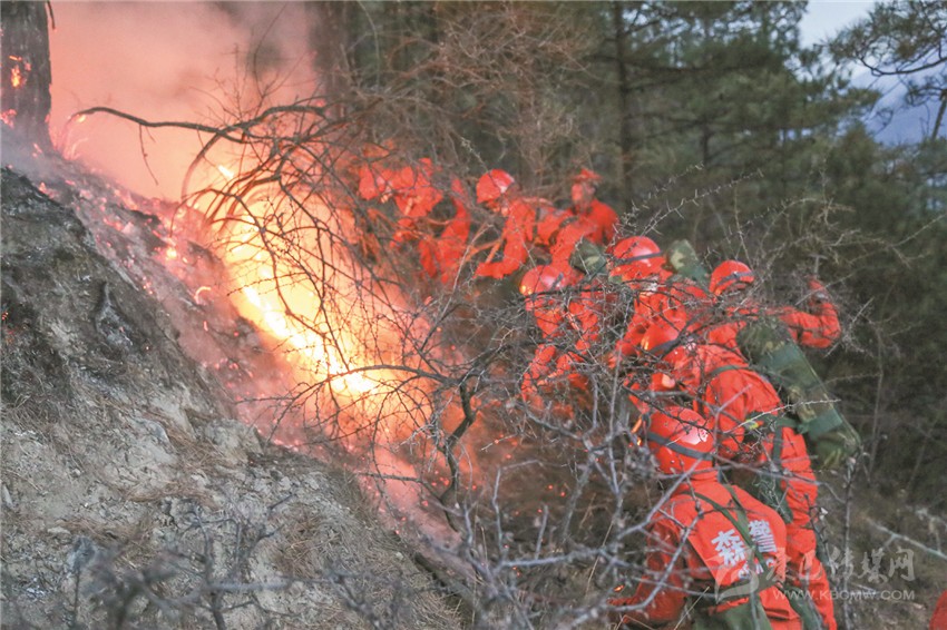 火災(zāi)發(fā)生后,武警甘孜森林支隊(duì)道孚大隊(duì)40名官兵迅速趕赴現(xiàn)場展開滅火工作。高原的夜晚氣溫雖然降至-14℃,但凜冽的寒風(fēng)卻讓林火肆意蔓延,撲火官兵跟著火頭一路追擊,力阻火場面積擴(kuò)大。19日凌晨,滅火官兵抓住清晨風(fēng)力小、氣溫低的有利條件,向火魔發(fā)起進(jìn)攻,殲火頭、撲余火、滅煙點(diǎn)、清火線,2小時(shí)30分鐘后完成了南線滅火作戰(zhàn)任務(wù)。隨后,道孚森林大隊(duì)官兵兵分兩路幫助地方專業(yè)滅火隊(duì)和撲火群眾清理煙點(diǎn)、站桿倒木。一路采取接力方式,采用水箱將山脊一處水源不間斷傳遞至火場一線,清理煙點(diǎn);另一路運(yùn)用油鋸、砍刀、組合工具對任務(wù)區(qū)戰(zhàn)桿倒木進(jìn)行清理。