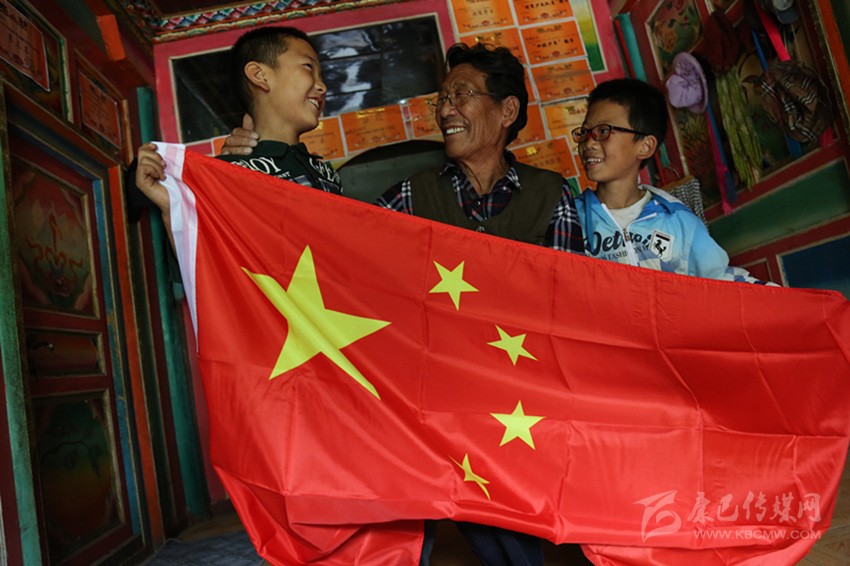 8月5日早晨7時(shí)50分,鬧鈴響起。巴塘縣蘇哇龍鄉(xiāng)絨岔絨村73歲的藏族老人翁修從臺柜上拿起疊得整整齊齊的國旗,登上樓頂,把國旗穿進(jìn)旗桿后,靜靜地等待著;8時(shí),老人揮舞國旗,高唱國歌:“起來,不愿做奴隸的人們……”