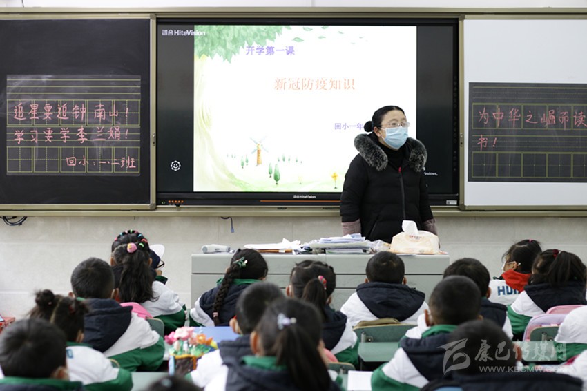 走進(jìn)熟悉的校園里,遇見久違的老師與同學(xué),即使戴著口罩也遮不住同學(xué)們的激動之情。課堂里,開學(xué)后的第一課不是語文,不是數(shù)學(xué).....而是一節(jié)特別的防疫主題課。