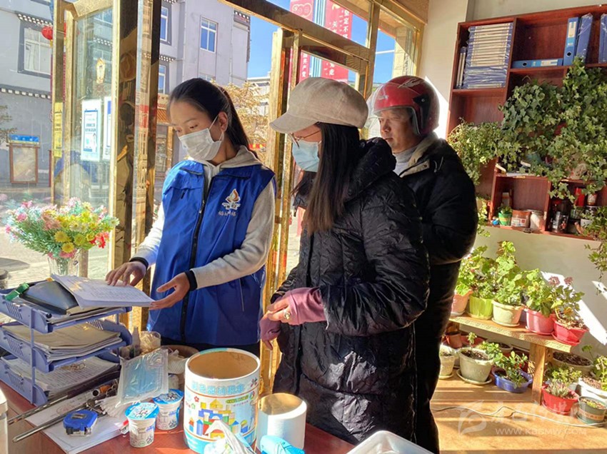 網(wǎng)格員走訪商戶。