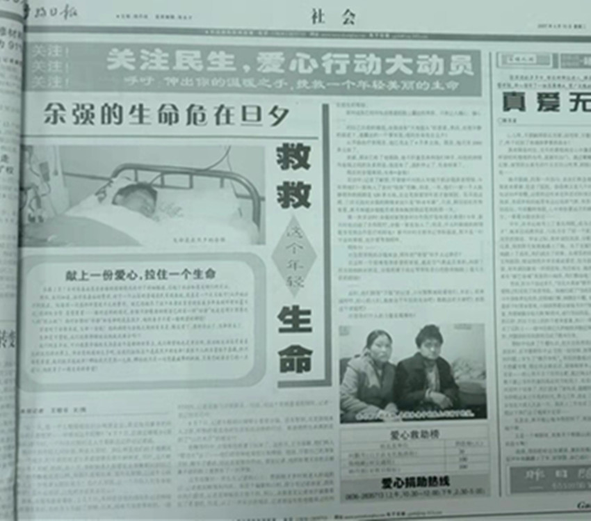 那時,當記者將能走訪的部門都走訪完,將能為余強爭取的資金都爭取后,深感愧對余強一家。他們將所有的希望都寄托給記者,寄托給報社??墒?,記者和報社卻無法為他們帶來想要的希望。