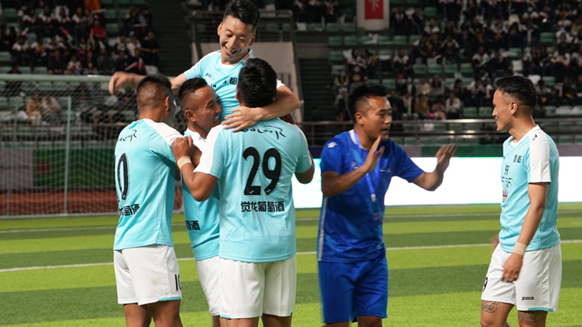 下半場一開場,兩隊攻勢如潮。第63分鐘20秒,青海黃南隊獲得角球機會,11號選手南拉卡在球門25米遠(yuǎn)射破門,全場沸騰,雙方比分重新回到同一起跑線,青海黃南隊1:1扳平青海海南隊。