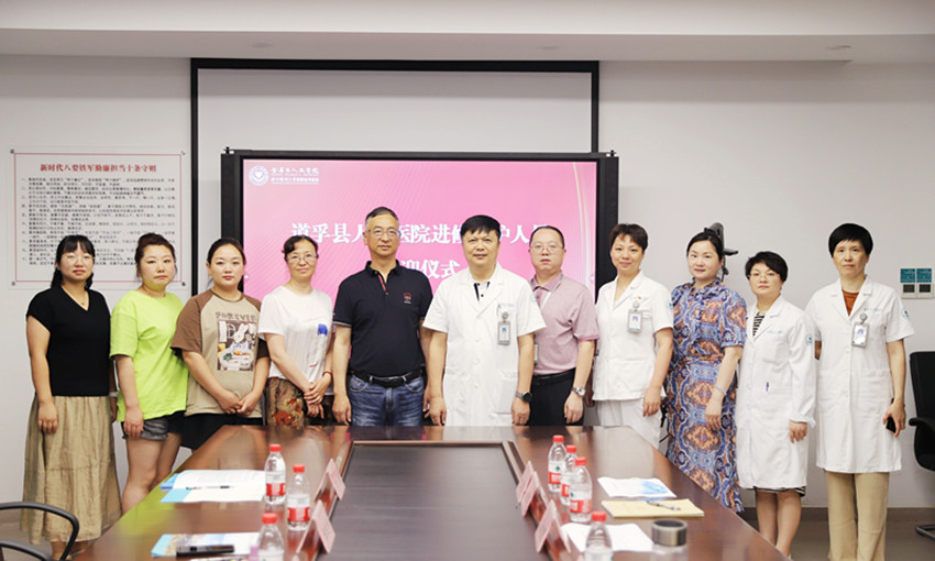 程振宇(左五)選送三名醫(yī)護(hù)人員赴金華市人民醫(yī)院進(jìn)修。