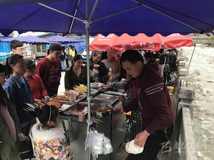 那么真實(shí)情況到底如何呢?7日,記者專門來(lái)到康定中學(xué)走訪調(diào)查。記者搭乘出租車前往學(xué)校,途中司機(jī)卻回應(yīng)“康中校門口那一段全是賣炸洋芋、炸雞腿的攤攤,車子根本開不過(guò)去,只能提前下車。”當(dāng)記者步行過(guò)橋到達(dá)校門口路段時(shí),雜亂無(wú)序而又異常喧鬧的場(chǎng)面立刻映入眼簾。約摸十來(lái)家燒烤油炸“流動(dòng)攤點(diǎn)”上,商販們手中的烤具上下翻飛,幾十名身著“康定中學(xué)”校服的學(xué)生駐足其間,從校門出入的車輛不斷鳴笛避讓??久娼?、炸土豆、烤雞腿,濃濃的油煙、各種調(diào)料混合的氣味、滋滋的油炸聲……儼然一副“美食街”的火爆景象。