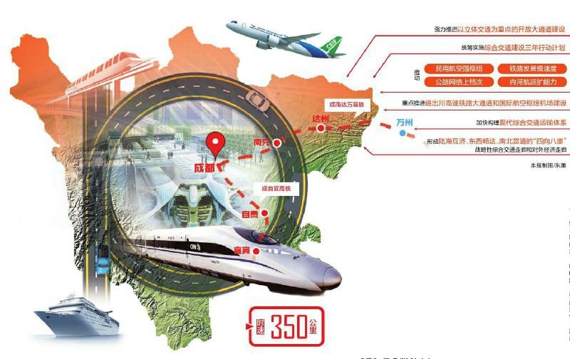 對內(nèi),有助于支撐我省“一干多支”“五區(qū)協(xié)同”發(fā)展戰(zhàn)略。西南交大黨委副書記晏啟鵬認(rèn)為,四川空、公、水運(yùn)已有一定基礎(chǔ),發(fā)展態(tài)勢清晰,再新增受惠面大、參與度廣的兩條高速鐵路建設(shè),能使成都和川南經(jīng)濟(jì)區(qū)、川東北經(jīng)濟(jì)區(qū)實(shí)現(xiàn)1小時(shí)左右交通互聯(lián),不同城市將連點(diǎn)成面。
