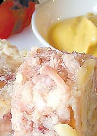 彝族風(fēng)味肉凍,這是彝族地區(qū)較為講究的一種菜肴。它采用豬蹄和肘子制做而成。一般做法是將肉放入鍋內(nèi)煮軟后撈起,剔去骨頭并將肉宰碎,放上木姜、生姜、花椒等佐料,有的還放橘子皮,或雞蛋之類的東西,然后放回鍋里煮上一陣,以便使佐料滲入肉中,最后放入木缽內(nèi),放上一夜即成。肉凍柔軟可口,香味獨(dú)特,是彝族十分喜愛(ài)的一種食品。