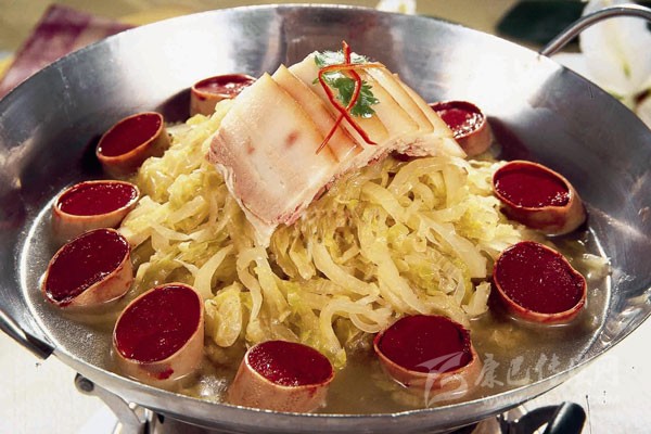 血腸的烹飪方法也別具特色。將灌好的血腸放入湯中煮沸,煮至血腸浮起,腸成灰白色,約八成熟,便立即起鍋,盛入盤(pán)內(nèi),全家席地而坐,割而食之。
