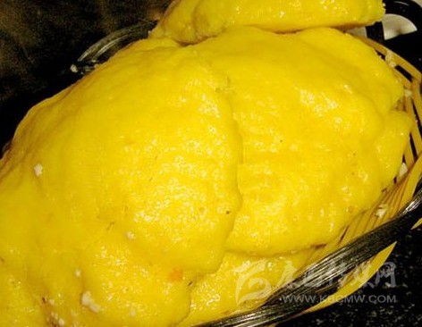 玉米饃是爐城平常人家常食的,就是許多做小生意開(kāi)小攤鋪,常蒸食玉米饃。雅安人彭大春夫婦,早年曾在康定幫人干活,夫婦善做小吃。爐城大米昂貴,知爐城愛(ài)吃玉米,又愛(ài)吃“焦粑”(一種以面粉起酥肉餡炕餅的小吃)習(xí)慣,用金鉤鮮肉做餡,仿效“焦粑”的做法,用上等玉米面,創(chuàng)造出玉米面包金鉤炕餅,以其香、咸酥、脆味長(zhǎng)誘人,食者排隊(duì)購(gòu)買,風(fēng)行一時(shí)。