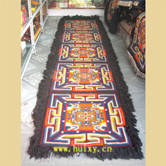 藏毯是植物染色,手工捻線,經(jīng)藝人的精心編織而成。它柔軟、耐用、美觀、大方,又有濃厚的民族特色,對生活在高寒地區(qū)的人們隔潮御寒、保溫取暖有重要作用。因些是長期在牧區(qū)生活所不可缺少的用品。它的品種,有地毯、炕毯、坐毯等。它是在藏族傳統(tǒng)藝術(shù)的基礎(chǔ)上,吸收、融合了漢族、印度和尼泊爾宗教藝人精華,形成具有自己獨特的藏族藝術(shù)風(fēng)格的工藝美術(shù)品。       傳統(tǒng)藏毯的藝術(shù)風(fēng)格,帶有濃厚的宗教色彩,如佛八寶、暗八仙、國王七寶等。佛八寶即法輪、法螺、寶傘、寶蓋、荷花、寶罐、雙魚、盤花;暗八仙屬漢道教文化即寶劍、寶葫蘆、漁鼓、陰陽板、仙笛、寶扇、花籃、荷花;國   王七寶也稱怵寶,屬印度佛教文化,即方勝、連環(huán)錢、犀角、令牌、象牙、珊瑚、珠寶。還有漢文化的琴棋書畫和梅蘭竹菊等。這些內(nèi)容既展示了人們的勤勞智慧和精神力量,也體現(xiàn)出人們對美好未來的期待、愿望和幻想。藏毯的表現(xiàn)形式以傳統(tǒng)式為主,還有自由式、龍鳳式及隨品種形式不同的構(gòu)圖形式。色彩表現(xiàn)方面尤為豐富,顏色艷麗、純度高、對比強,色彩構(gòu)圖穿插靈活,與藏族建筑彩畫的裝飾風(fēng)格一脈相承。