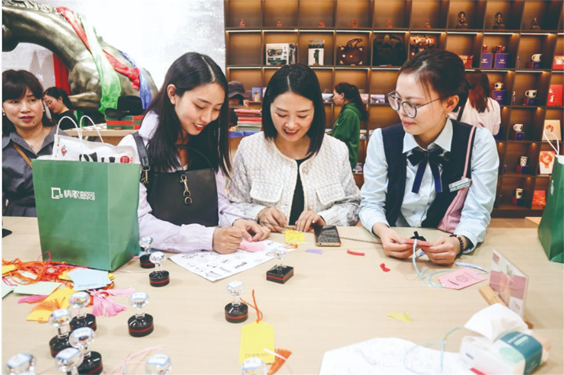 圖為游客將來(lái)自情歌郵局的祝福和溜溜城的記憶‘郵’回家。