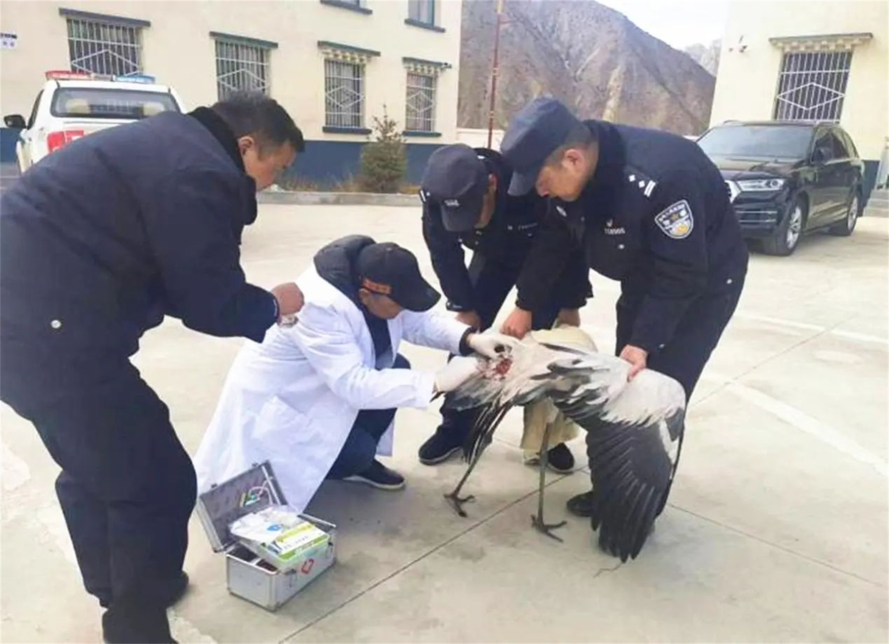 今年3月,石渠縣林草局野保站接收到石渠縣真達派出所民警送來的一只傷勢嚴重的國家一級保護動物——黑頸鶴。