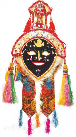藏戲中,國王的面具是紅色的,代表威嚴(yán);王妃的面具是綠色的,代表柔順;活佛的面具是黃色的,代表吉祥;善者的面具是白色的,代表純潔;女巫的面具是半黑半白,代表兩面三刀的性格;妖魔的面具青面獠牙,以示壓抑和恐怖;老村民的面具用白布或黃布縫制,眼睛、嘴唇處挖一個窟窿,以示樸實敦厚。
