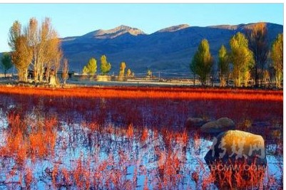 距稻城縣城金珠鎮(zhèn)28公里的桑堆小鎮(zhèn)風(fēng)景綺麗,在公路沿線的牧場(chǎng)開闊平展,河流平緩如鏡。遙望遠(yuǎn)處,在起伏的山巒間散落著村落、牧人、牛羊,呈現(xiàn)一派寧?kù)o祥和的景象。公元1144年前,一世噶瑪巴·都松欽巴覺悟贊譽(yù):“我走遍藏區(qū),來到此地。這里風(fēng)景秀美,牧草豐茂,六畜興旺,佛光普照。我愿在此修建寺廟成就功德”。金秋十月的桑堆紅草灘總是讓你感覺膠卷不夠用?!?/p>